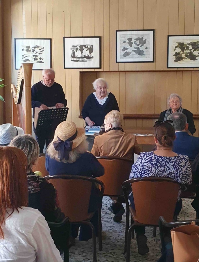 Camillo Vespoli all'arpa, alla presentazione del libro
